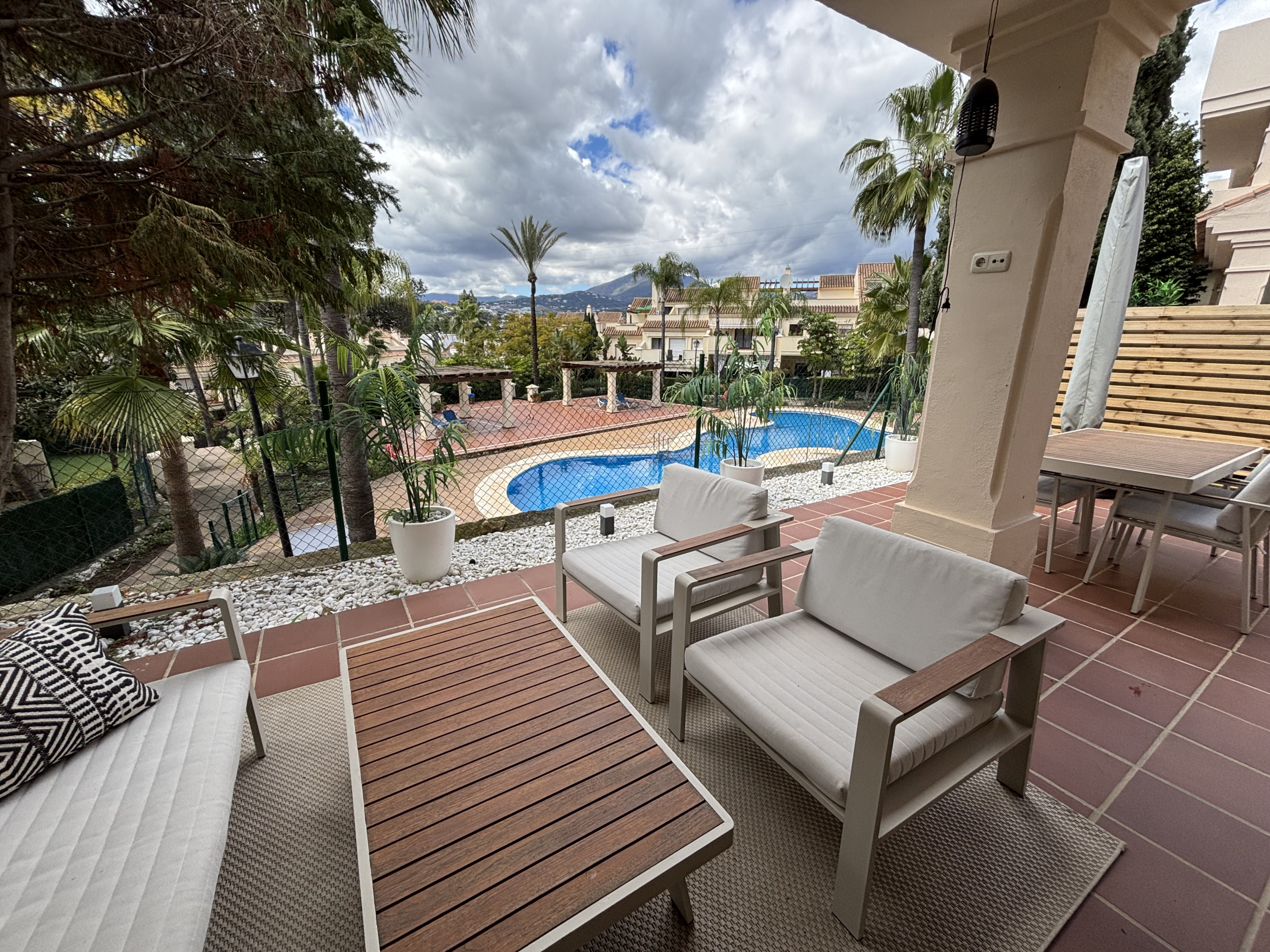 Die Ferienwohnung in Neu-Andalusien verfügt über 2 Schlafzimmer. Unterkunft verfügt über 120 m². Die Unterkunft verfügt über Gartenmöbel, ein umzäuntes Grundstück, eine Terrasse, eine Waschmaschine, einen Grillplatz, ein Bügeleisen/-brett, einen Zimmersafe, ein Internetanschluss (WLAN), eine Klimaanlage, einen Gemeinschaftspool, eine Garage auf dem Grundstück, 1 Fernseher, ein Radio.Die Separate Küche mit elektrisches Kochfeld ist ausgestattet in einen Kühlschrank, eine Mikrowelle, ein Backofen, Gefrierschrank, eine Spülmaschine, Geschirr/Besteck, Kochutensilien, eine Kaffeemaschine, einen Toaster und einen Wasserkocher.