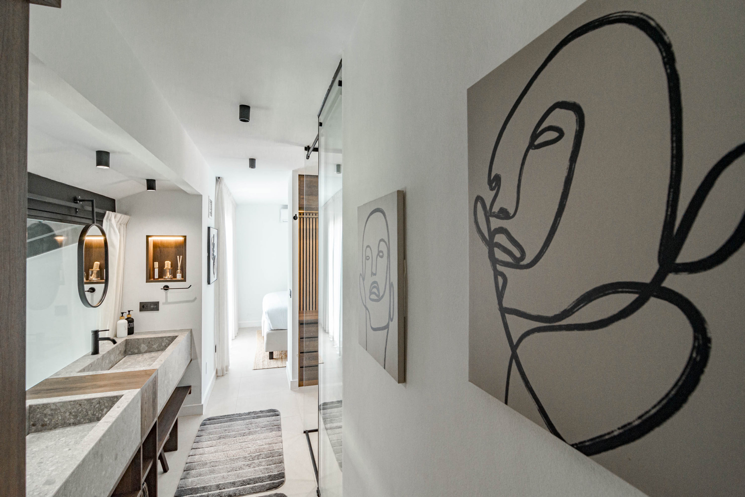 This three-bedroom apartment offers a stylish, comfortable vibe making your holiday still feel like home. The apartment features three spacious bedrooms, all bedrooms are tastefully designed and encompass king size beds. The apartment offers a Scandinavian feel, with modern elements throughout. Its warm living space offers a cosy seating area, dining room and an open plan kitchen. This stylish space creates a serene atmosphere that perfectly complements the property’s location. The accommodation is equipped with an iron, internet (Wi-Fi), heat pumps, air-conditioning, a communal swimming pool and private parking.