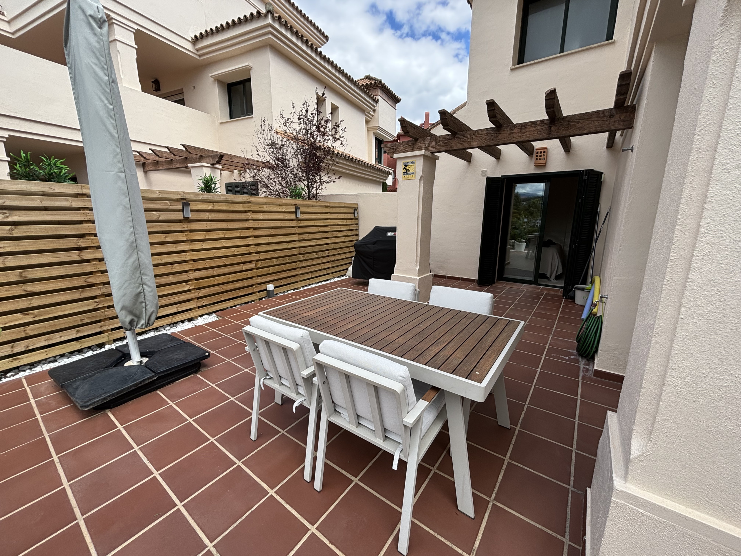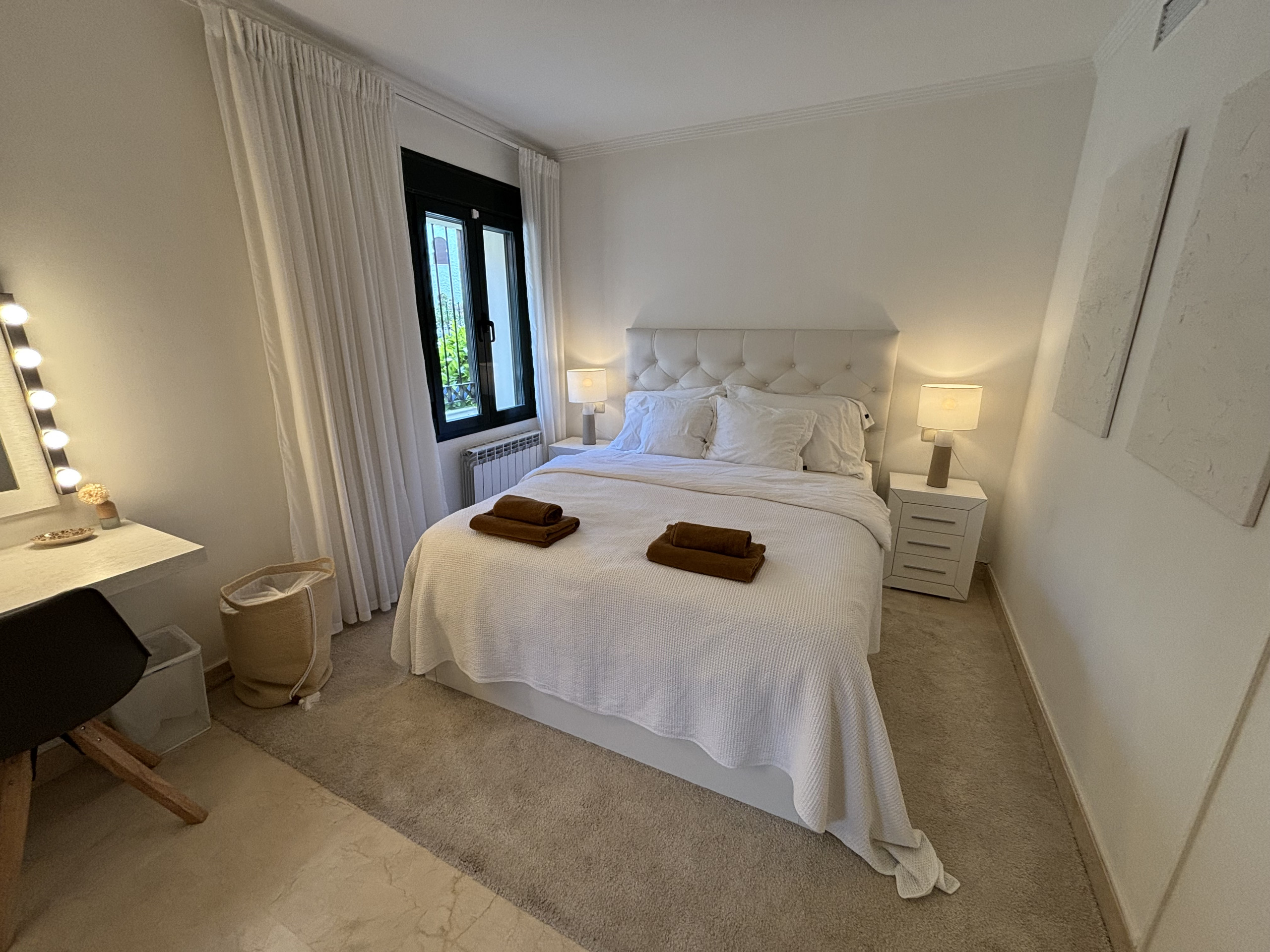 апартаменты в Nueva andalucia 2 количество спален вместимостью на 4 чел. Проживание из 120 кв.м. Размещение имеет сад, oгороженный участок, Терраса, стиральная машина, Барбекю, утюг, сейф, Доступ в интернет (wi-fi), кондиционер, бассейн жилого комплекса, гараж в этом же здании, 1 телевизор, радио. Отдельная кухня, оснащена электрической плитой, оборудовано холодильник, микроволновая печь, духовка, морозильная камера, посудомоечная машина, столовые приборы, кухонная утварь, кофеварка, тостер и Чайник.